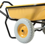 Équipée de roues gonflées Ø 400 mm avec jantes métal flasque et roulements à rouleaux PF 38, cette brouette offre une maniabilité fluide et un transport efficace des charges lourdes tout en réduisant l’effort physique.