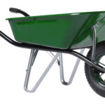 La CARGO MEDIUM 100 PEINTE– Roue Gonflée est une brouette polyvalente et robuste, conçue pour répondre aux besoins des particuliers comme des professionnels. Sa caisse peinte verte nervurée, d’une capacité de 100 litres, offre à la fois résistance et rigidité, idéale pour transporter terre, gravats, bois ou matériaux divers.