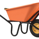 Équipée d’une roue gonflée Ø 400 mm sur jante métal flasque avec roulement à billes PF 128, cette brouette offre une excellente maniabilité et une grande stabilité lors du transport des charges. Les poignées bi-matières assurent confort et ergonomie même en usage intensif.