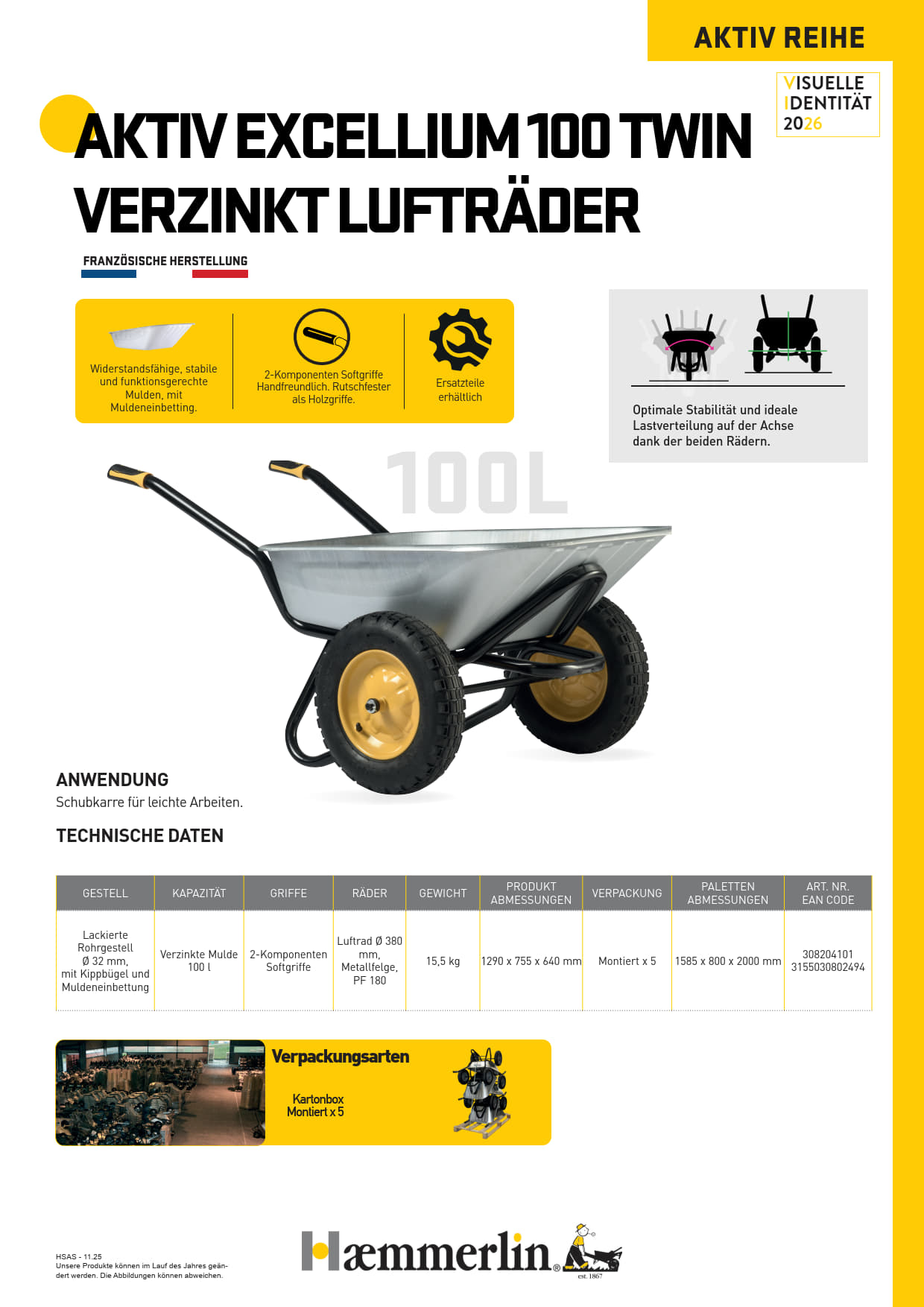 Entdecken Sie die werkseitig montierte Schubkarre AKTIV EXCELLIUM 100 TWIN verzinkt mit Lufträder.